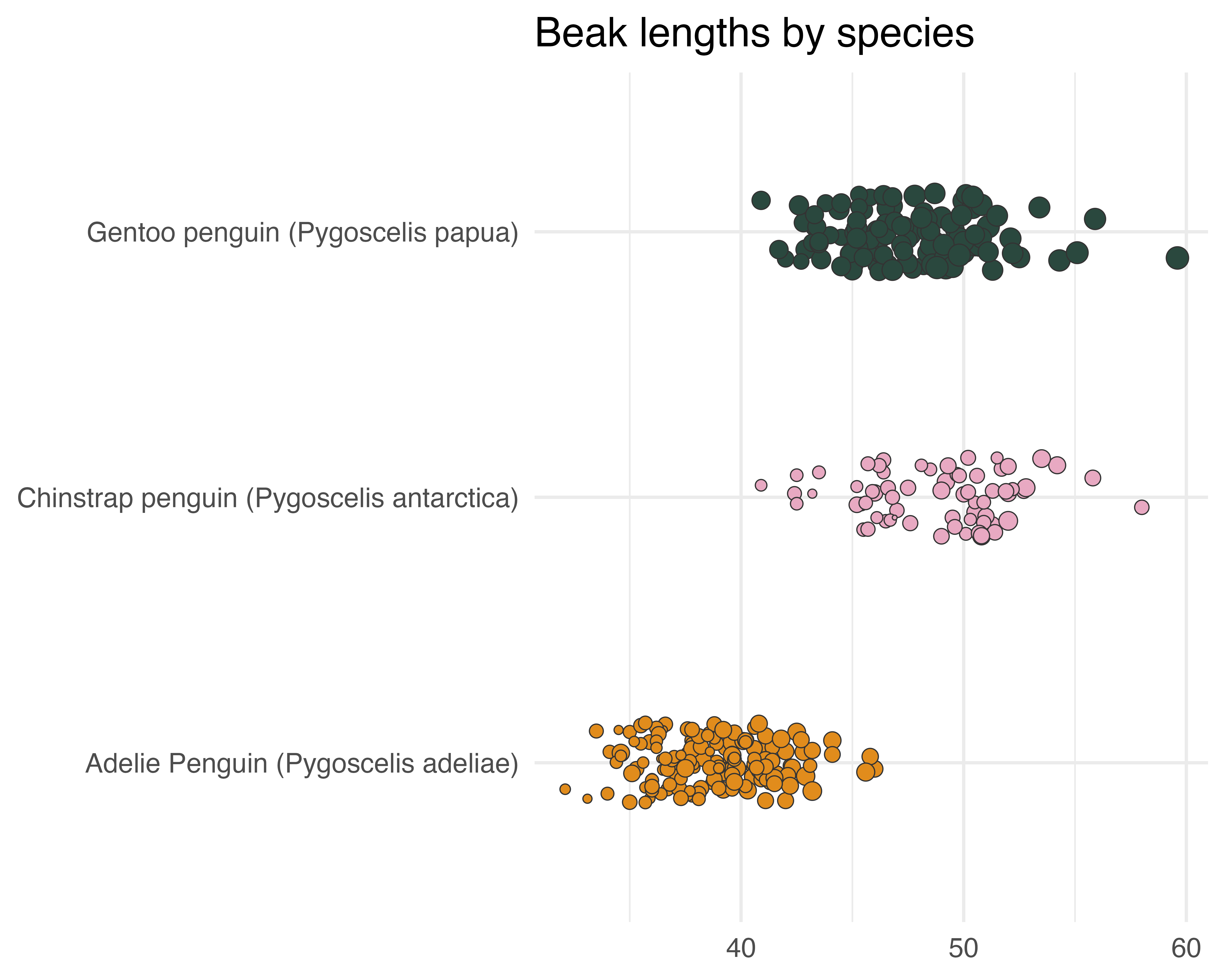 labs(title = "Beak lengths by species") +