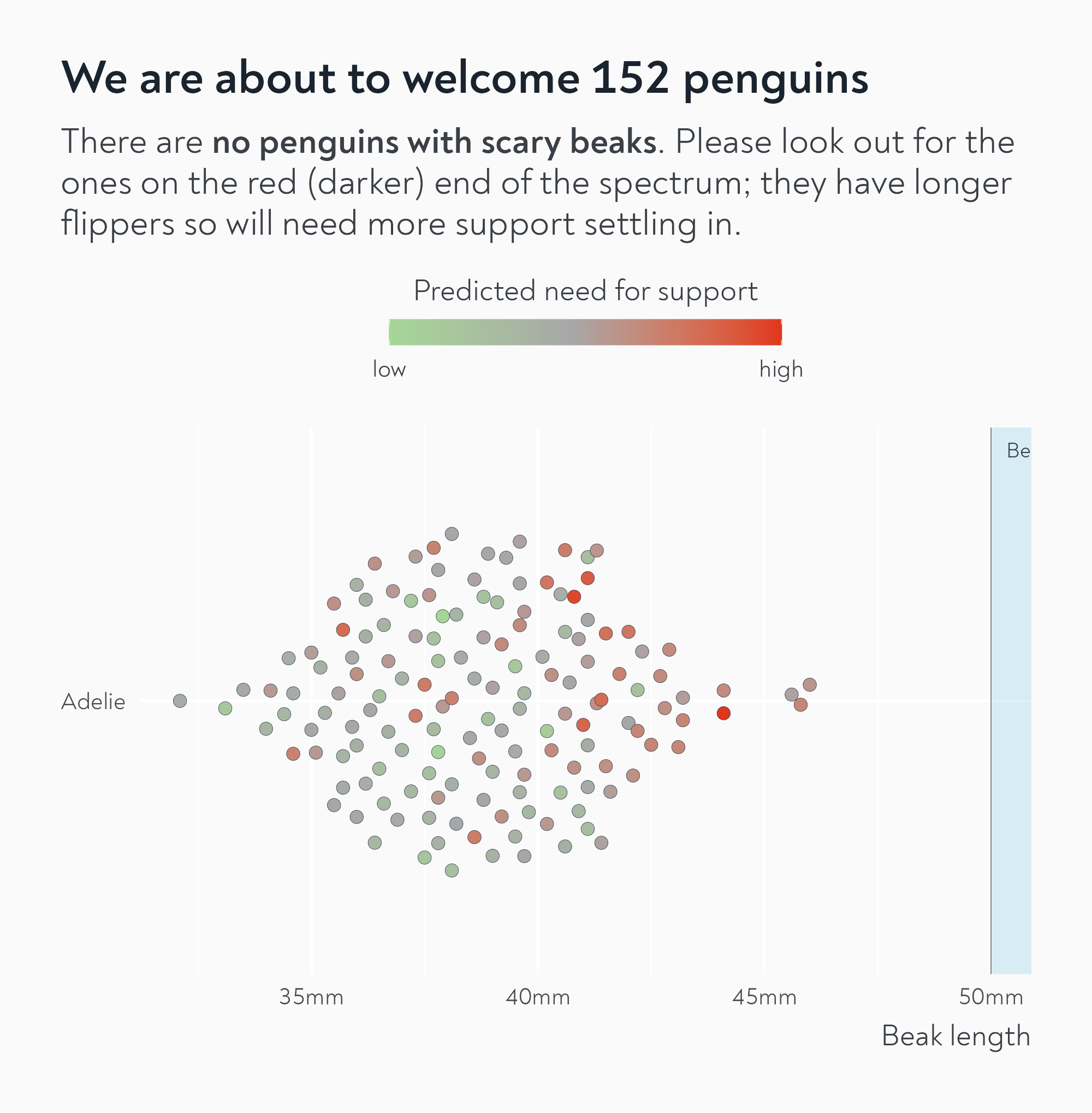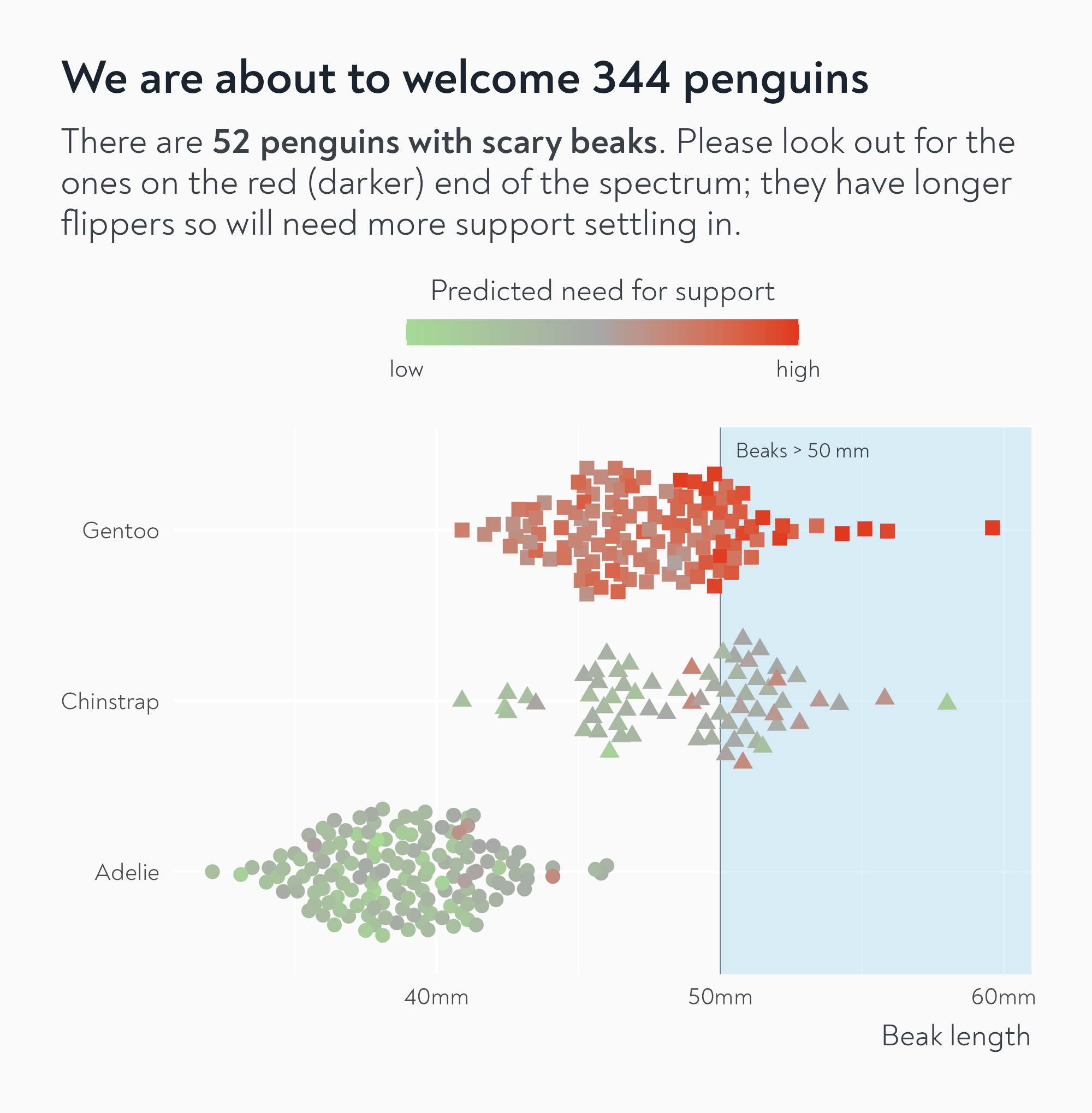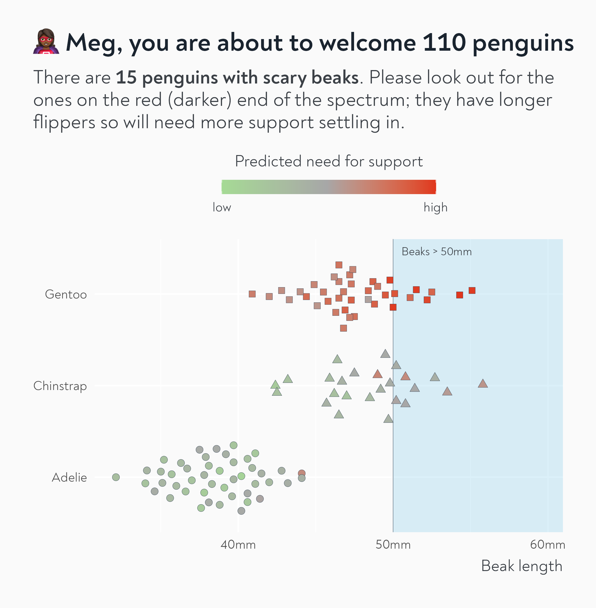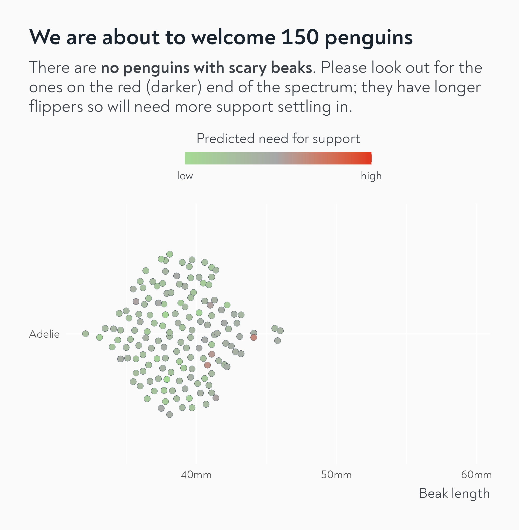 make_welcome_plot(df = head(penguins, 250), zoo_keeper = "Meg")