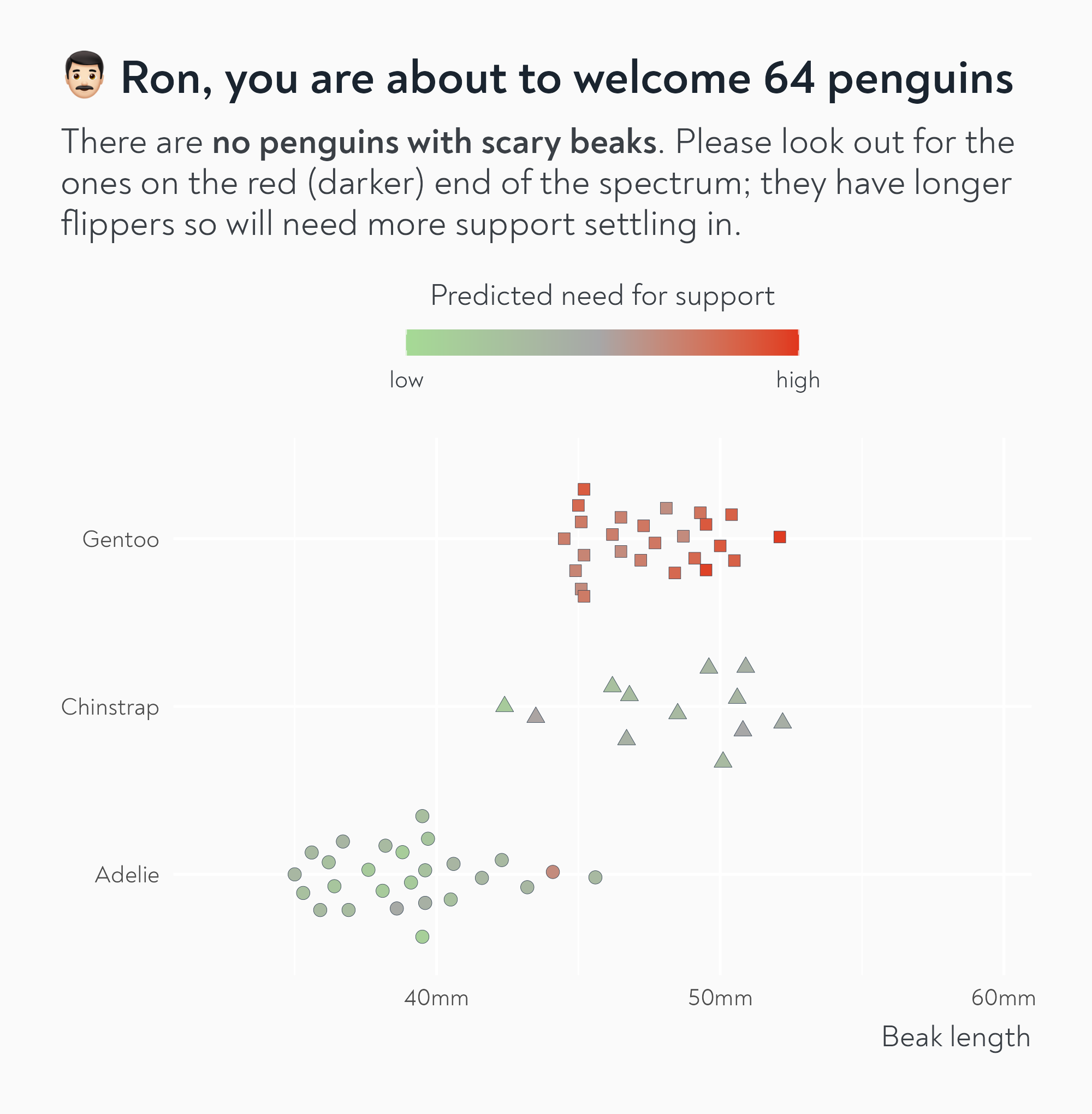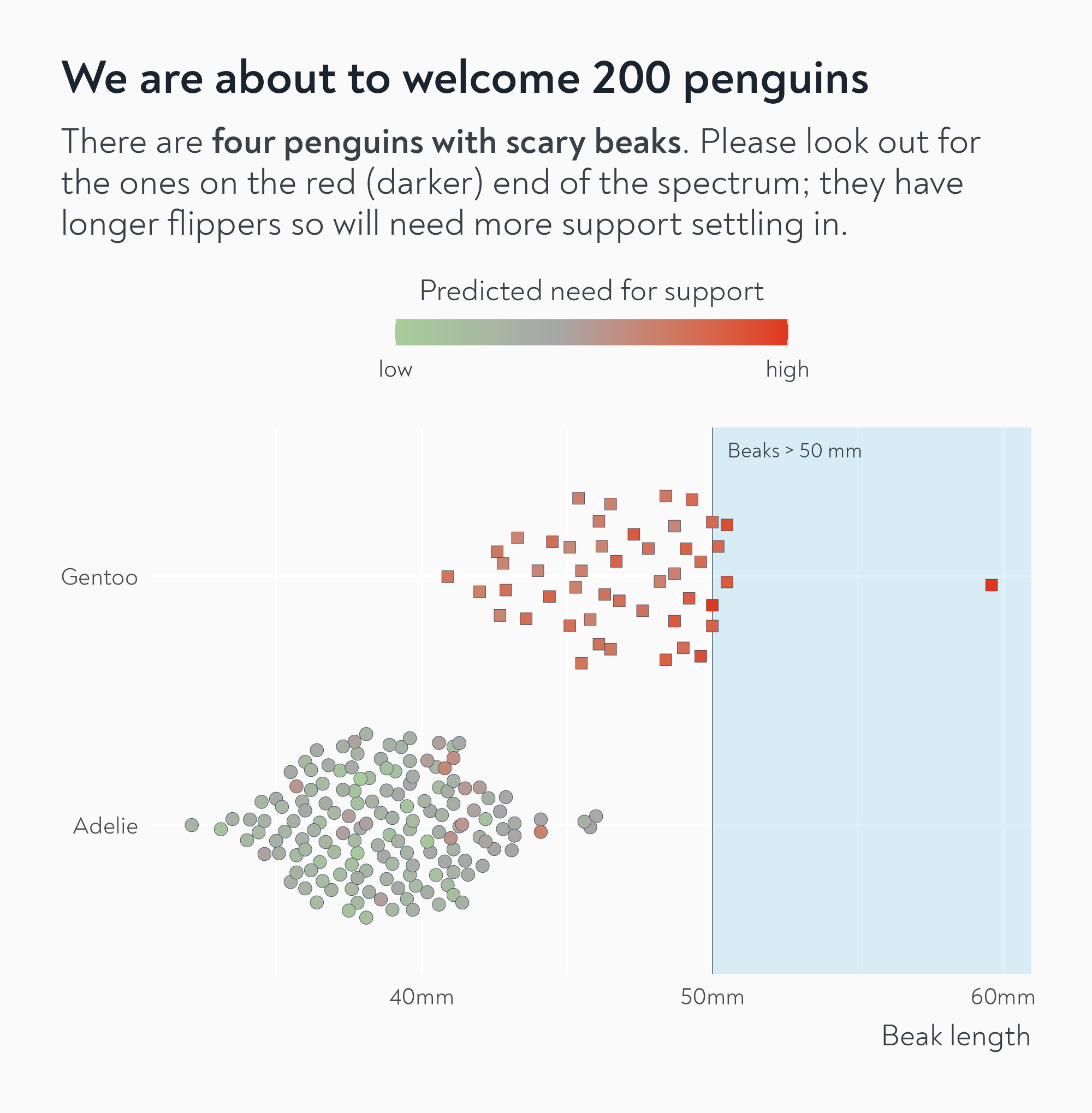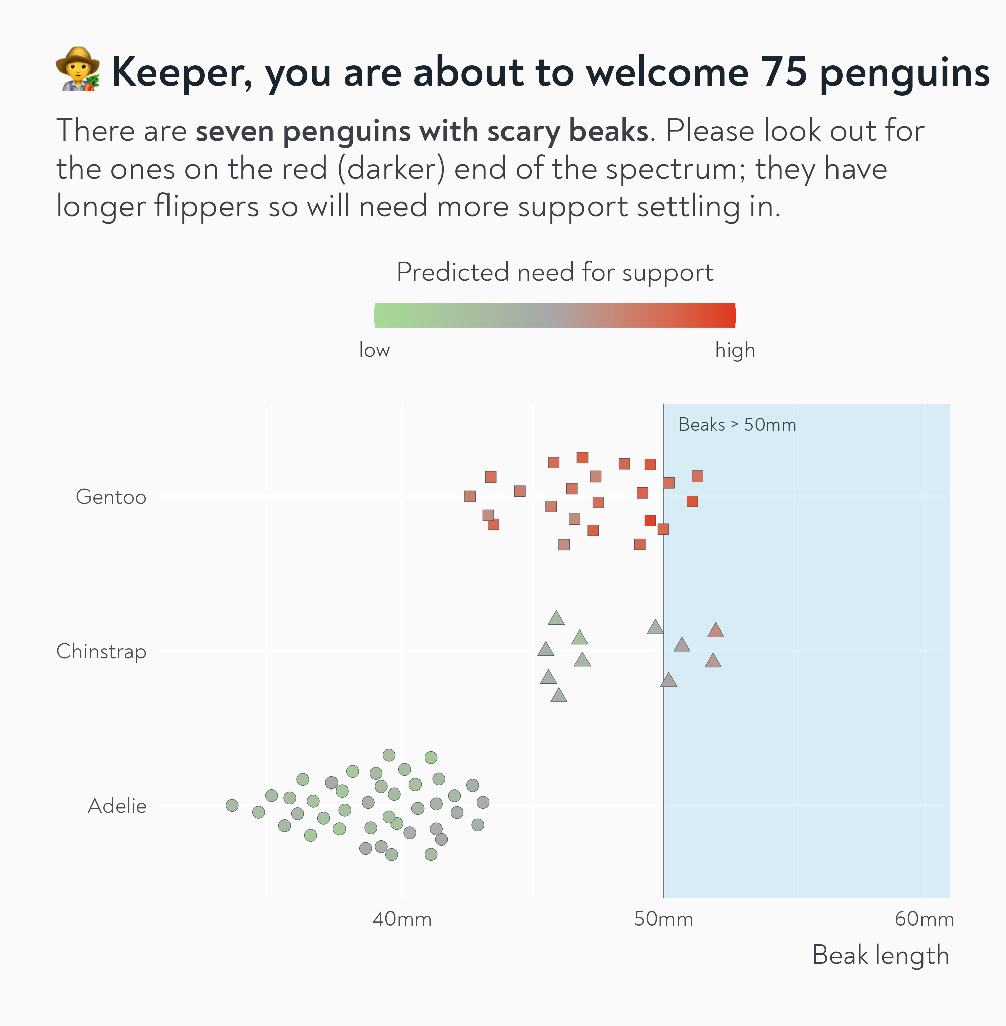 make_welcome_plot(df = head(penguins, 250), zoo_keeper = "Meg")