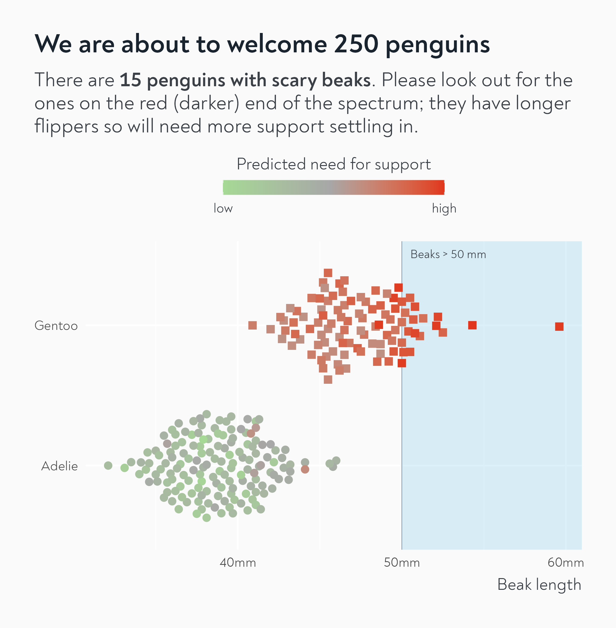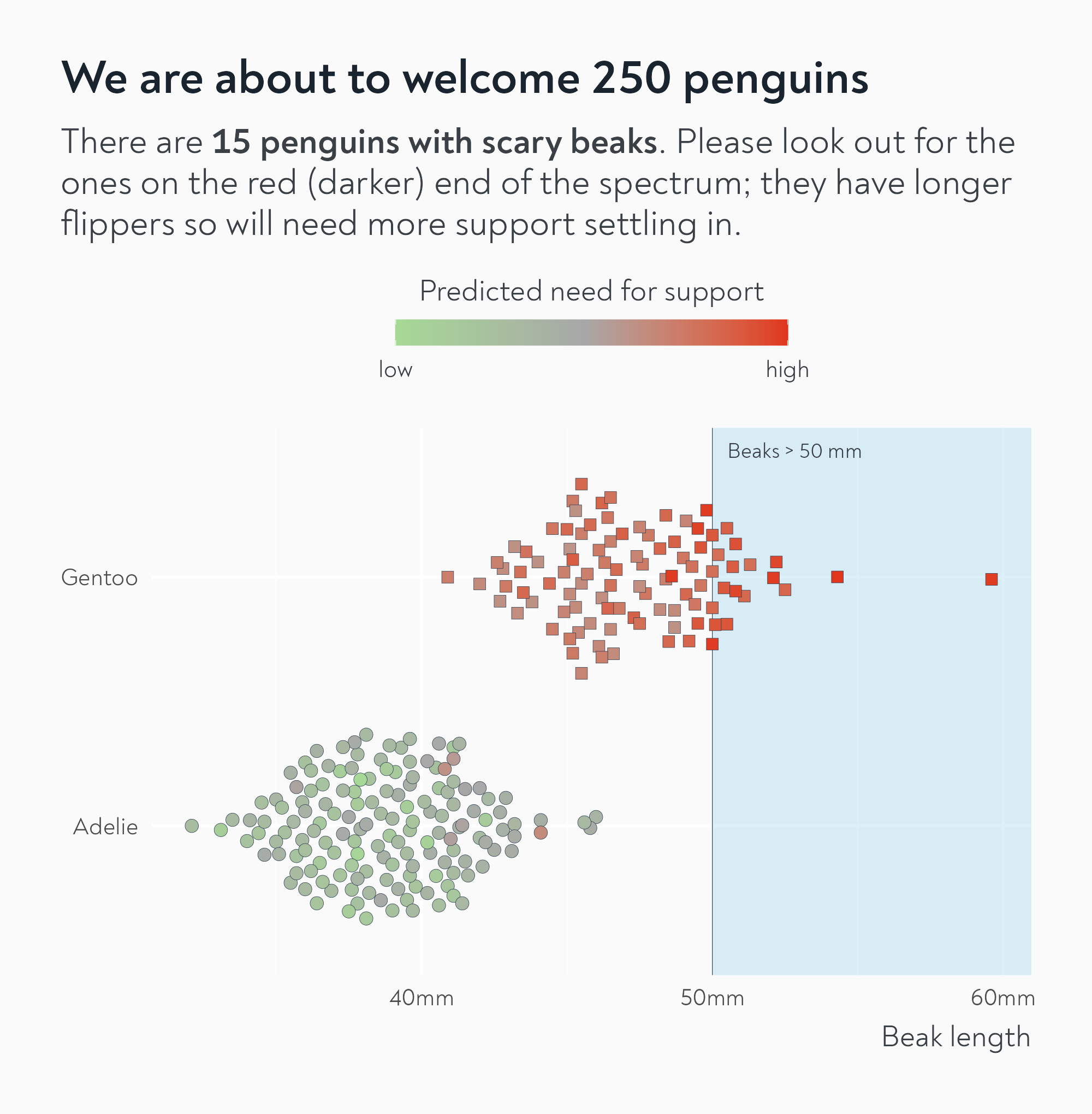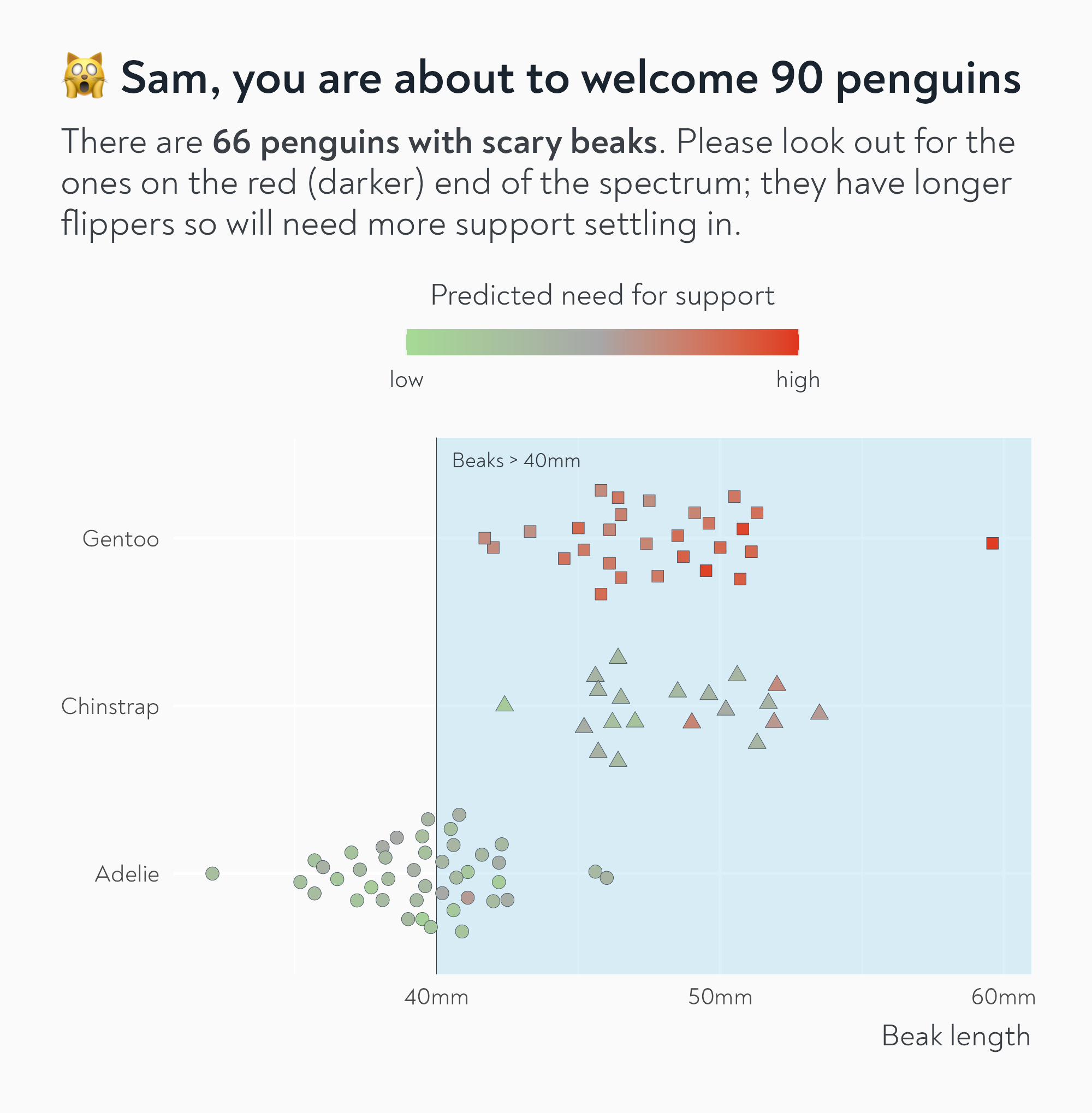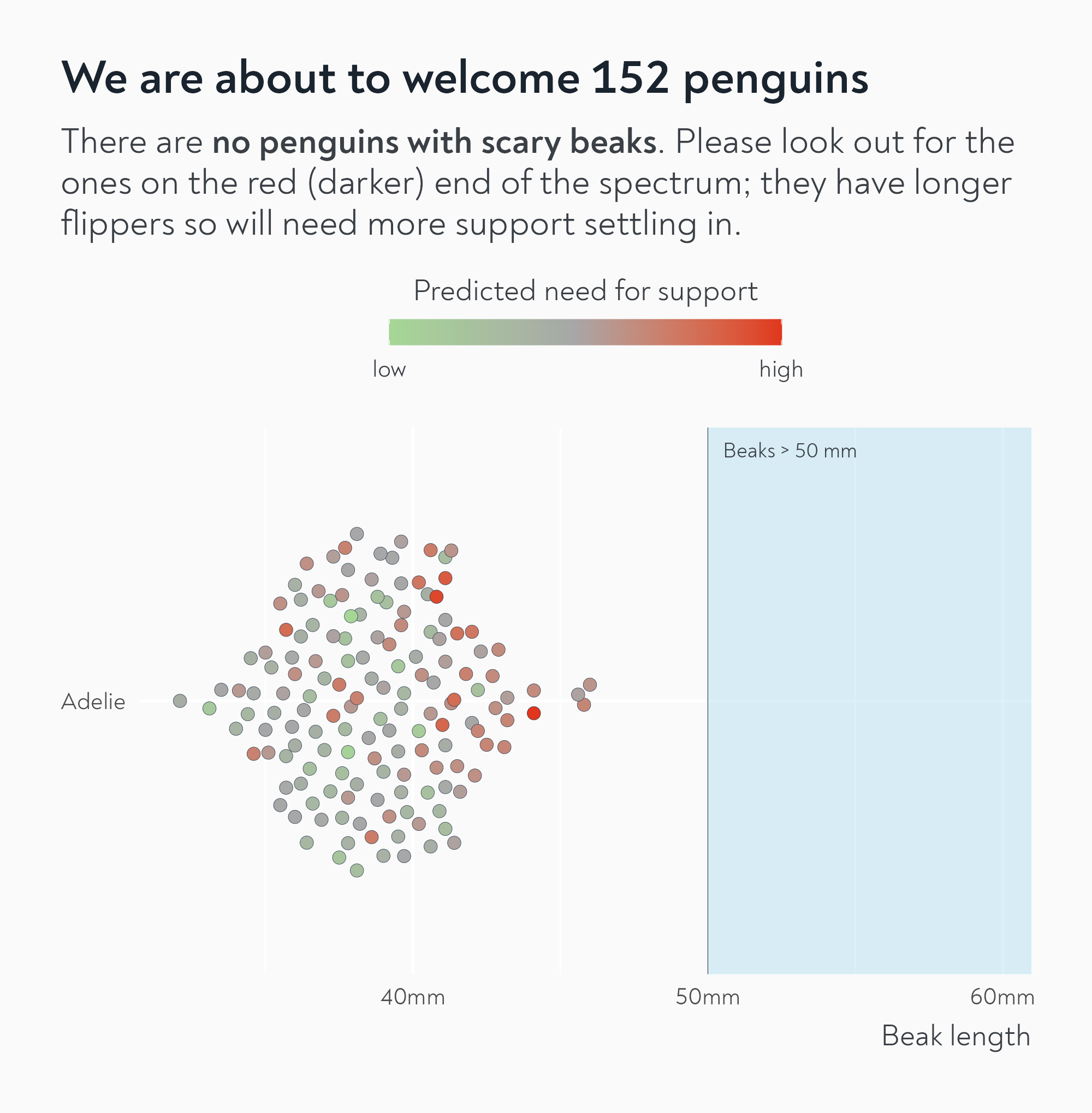 make_welcome_plot(df = head(penguins, 250), zoo_keeper = "Meg")
