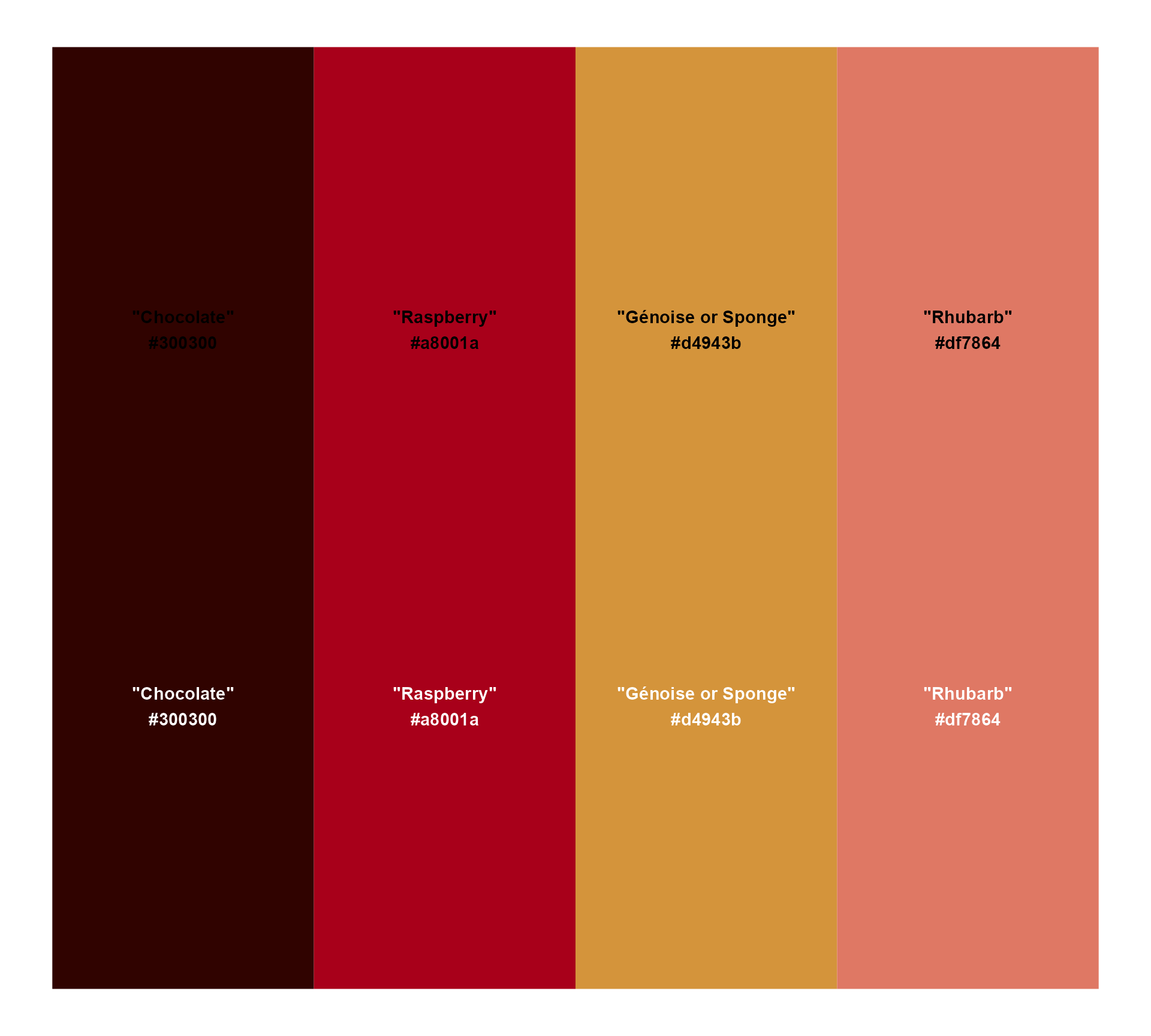 ggiraph::girafe(ggobj = choc_raspberry_bakes)Starting point: our colours